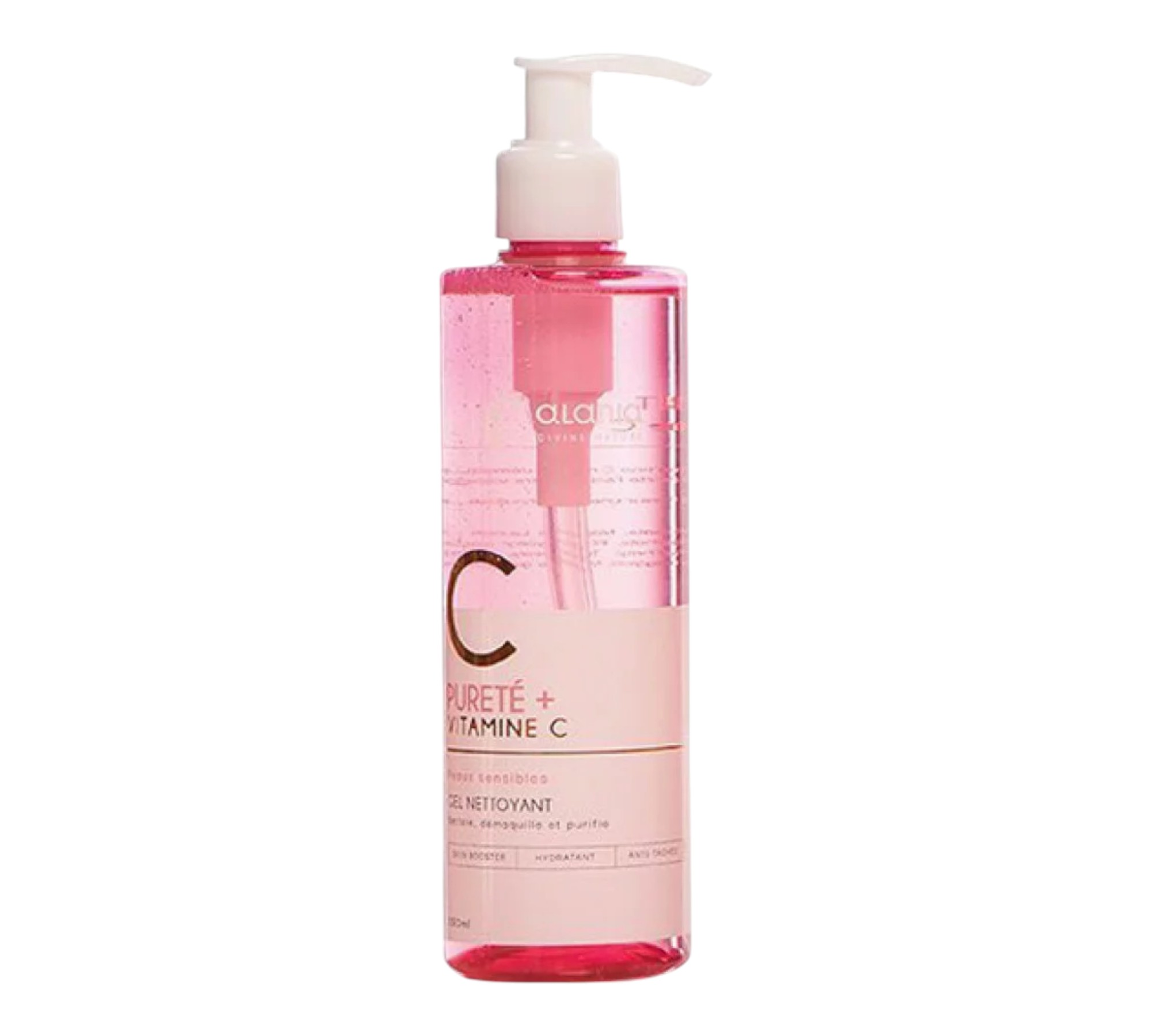 Le Gel Nettoyant Pureté + Vitamine C (250 ml) nettoie, démaquille et purifie la peau en profondeur tout en lui apportant éclat et hydratation.