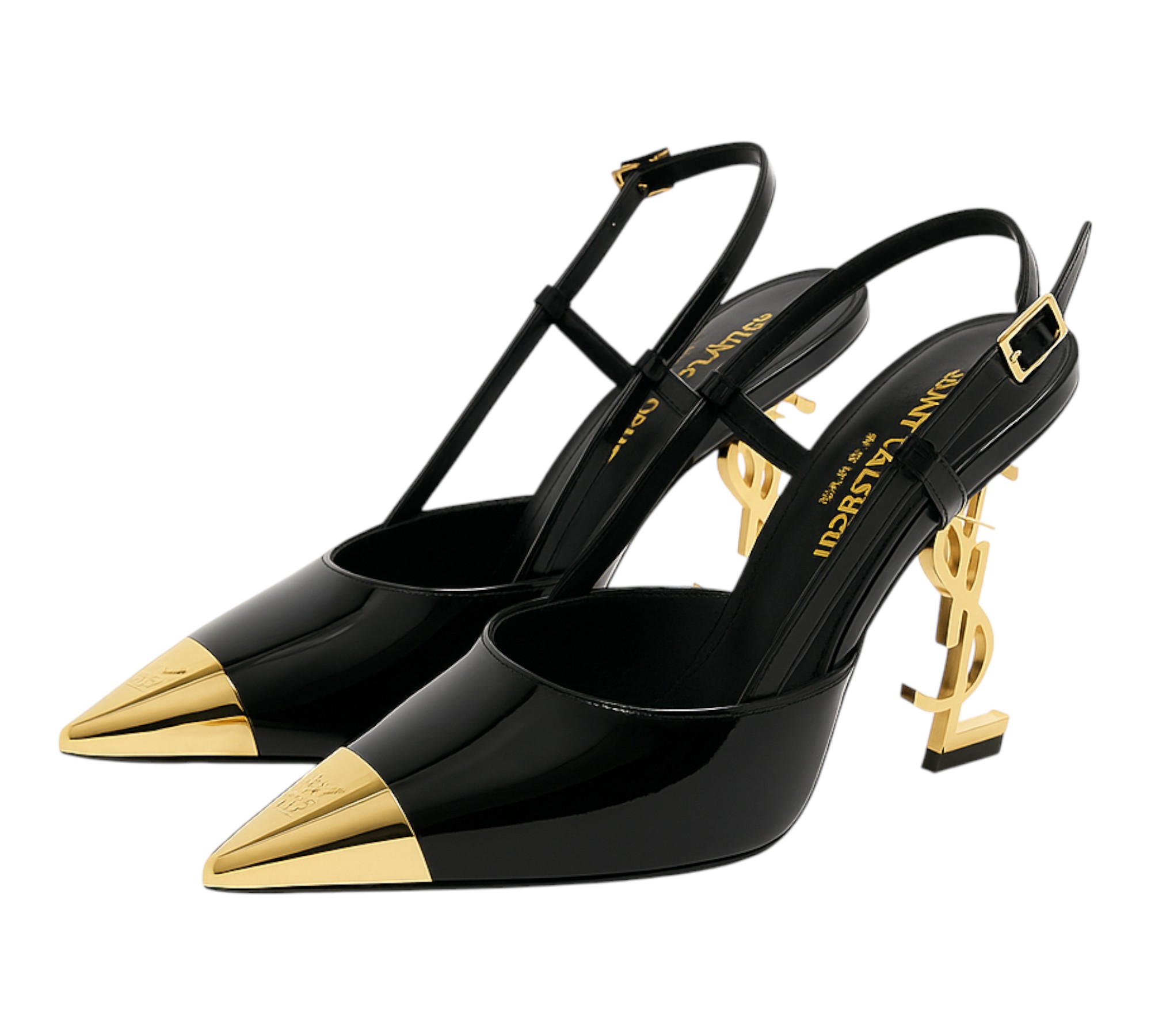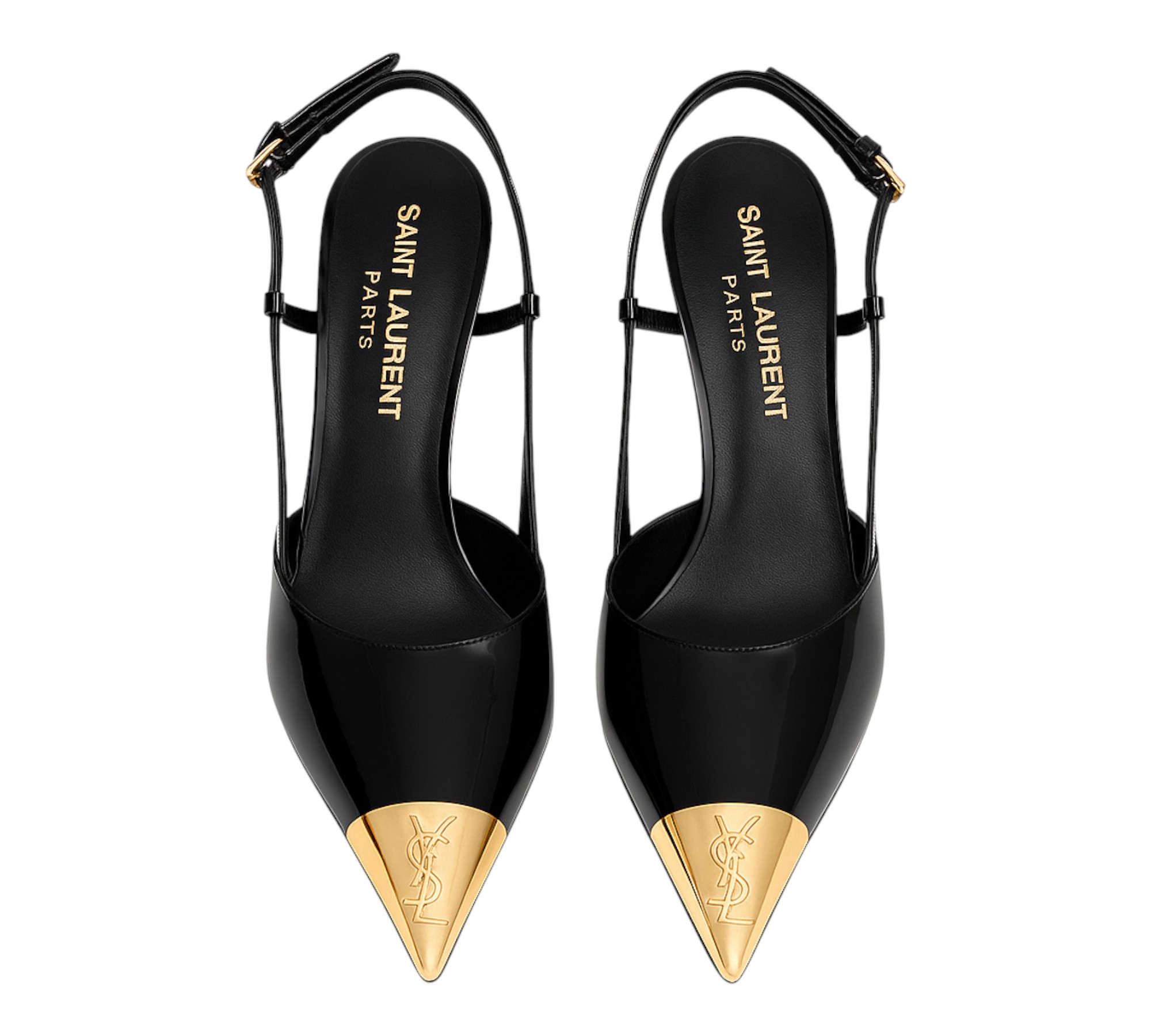 Confectionnés dans un cuir verni haut de gamme, ils se distinguent par leur fini brillant et leur détail doré métallique sur le bout pointu, pour une allure sophistiquée et audacieuse.