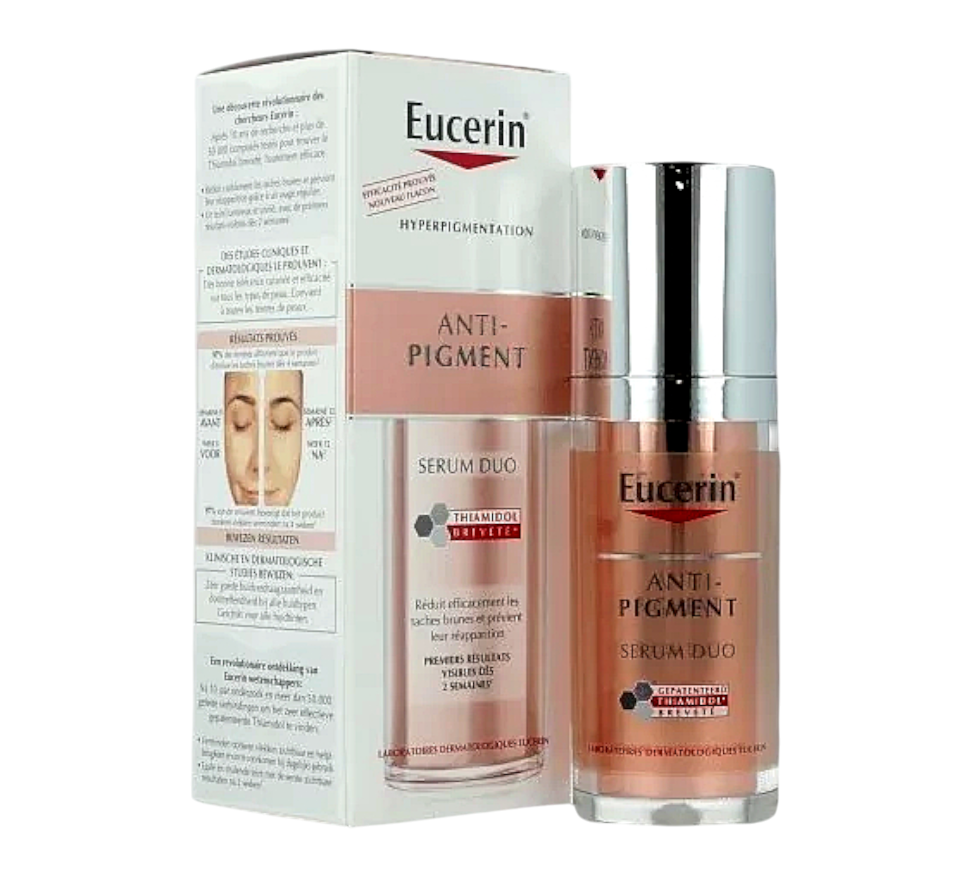 Eucerin Anti-Pigment Sérum Duo est un sérum double action formulé pour réduire efficacement les taches brunes et prévenir leur réapparition, tout en améliorant visiblement la qualité et l’éclat de la peau.
