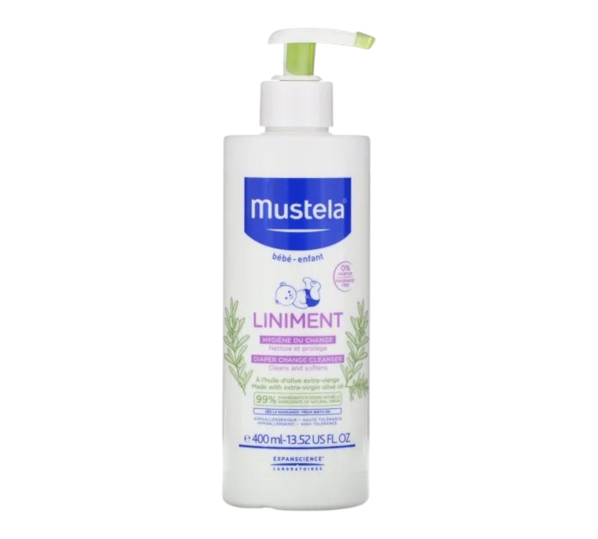 Dès la naissance(1), appliquer à l’aide d’un coton sur la peau de bébé à chaque change.