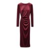 Le design signature repose sur un col drapé (cowl neck) sophistiqué qui crée du mouvement et de l’élégance au niveau de l’encolure. Les manches longues évasées avec détail de ruches ajoutent une dimension romantique et bohème très tendance. Cette combinaison crée une silhouette flatteuse et gracieuse. La longueur courte et ajustée complète le look avec un équilibre parfait entre sophistication et décontraction.