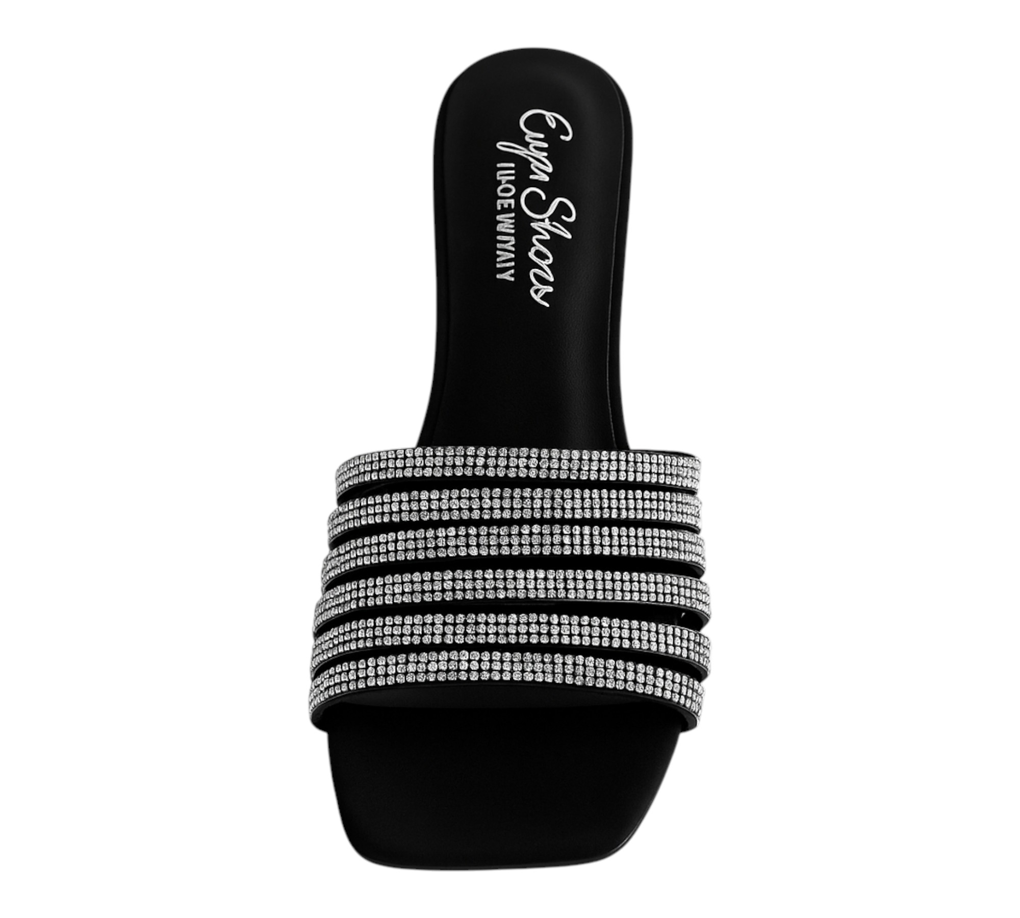 Ajoutez une touche d’élégance à vos tenues avec ces sandales à talon noir ornées de strass scintillants.