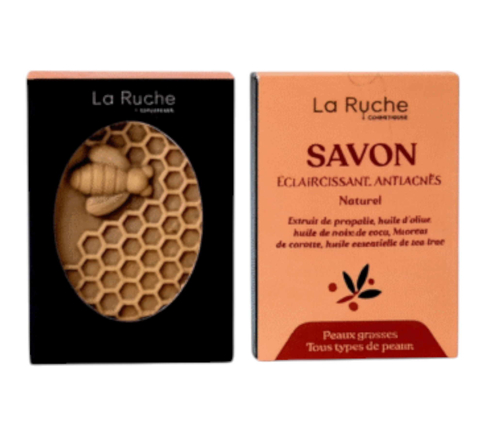 Un savon saponifié naturellement, enrichi en propolis, en huile et en Macérât de carotte, spécialement formulé pour réduire les imperfections, unifier le teint et purifier la peau au quotidien.