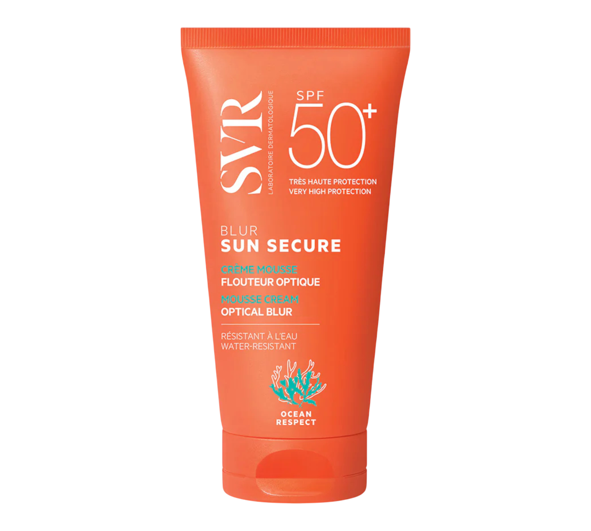 SVR Sun Secure Blur Teintée SPF50+ est une crème mousse flouteuse et teintée, offrant une très haute protection solaire tout en respectant les peaux sensibles et l’environnement marin.
