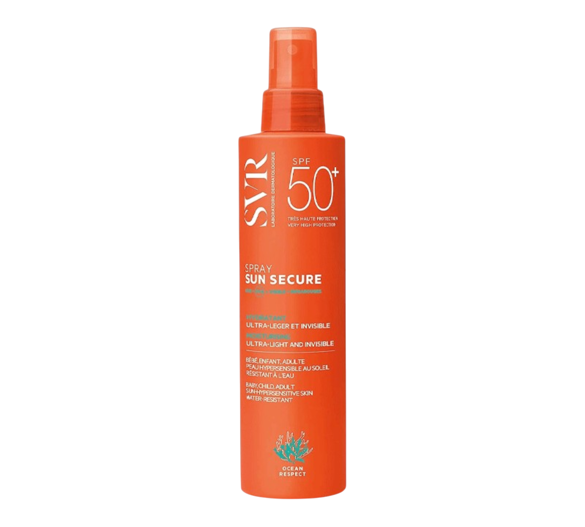 Le SUN SECURE Spray SPF50+ offre une très haute protection solaire dans une texture lait-en-brume légère au toucher sec et au fini invisible.
