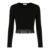 Pull noir à manches longues avec finition en dentelle au bas, alliant simplicité et élégance pour un look féminin et raffiné.
